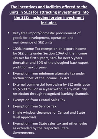 After India opened its economy, the policy makers came up with Special Economic Zones (SEZ) policy in 2000. This policy intended to make SEZs an engine for economic growth supported by quality infrastructure complemented by an attractive fiscal package, both at the Centre and the State level, with the minimum possible regulations.