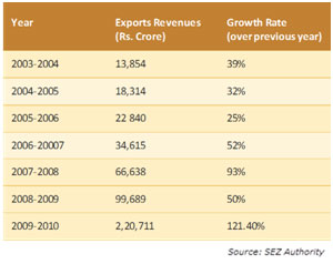 The establishment of SEZs has enabled India to increase its export revenues by huge margins across all sectors.
